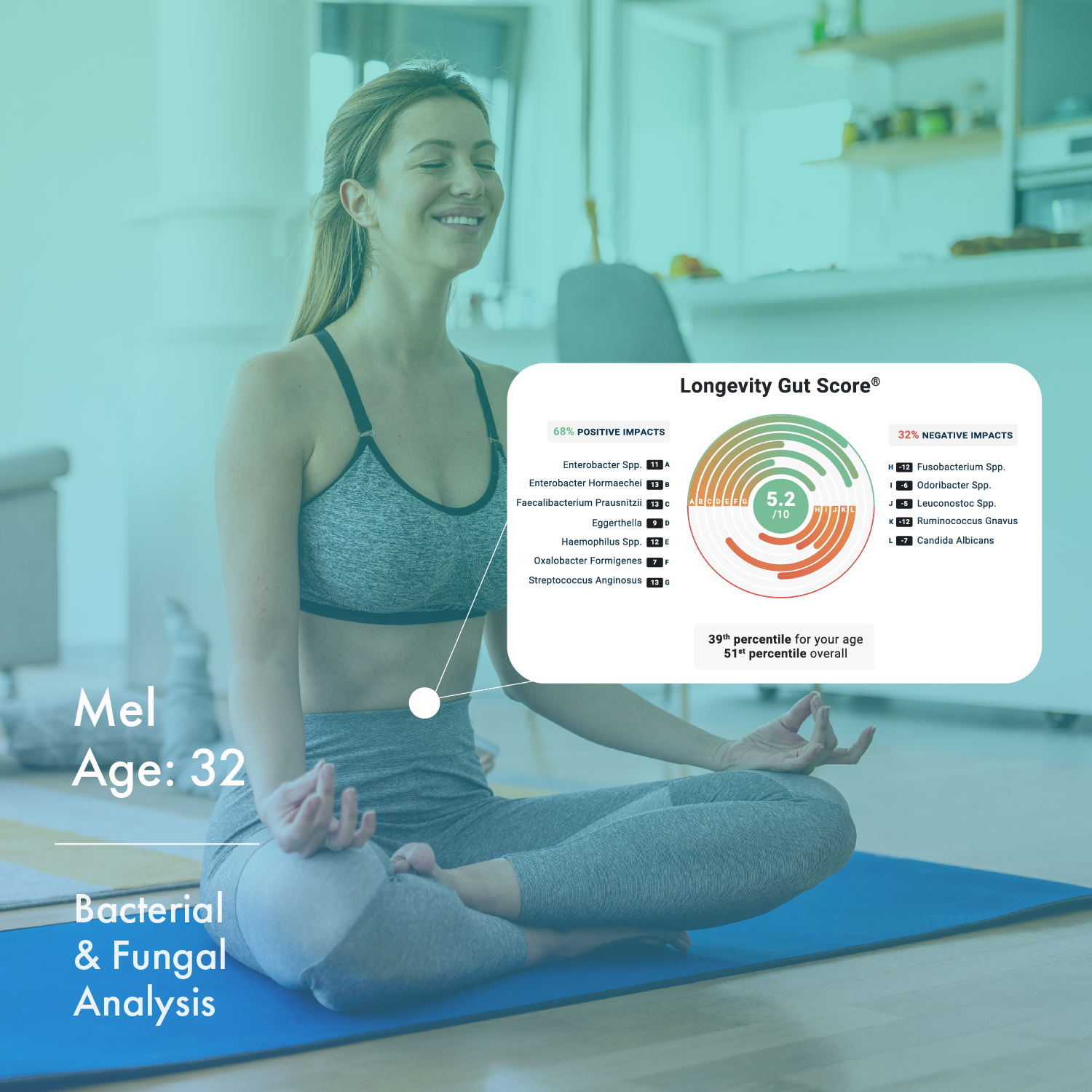 •A unique Longevity Gut Score which reflects the health of your gut microbiome as compared to others in your age group.