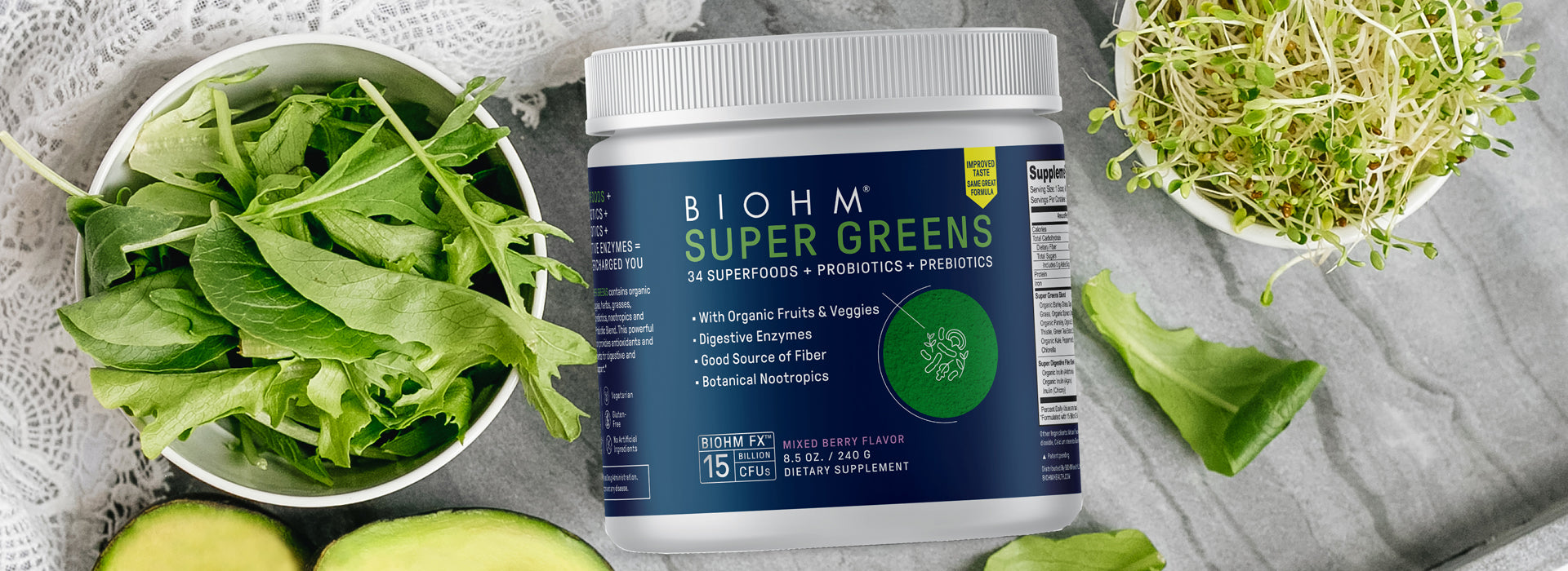 Our Super Greens include spinach, parsley, barley grass and wheat grass. These fiber-rich plants are packed with vitamins & minerals to support health and healthy microbes. Fiber nourishes beneficial gut species like Bifidobacteria. These veggies offer nutrients like folate, vitamin C, vitamin K, and beta-carotene.*